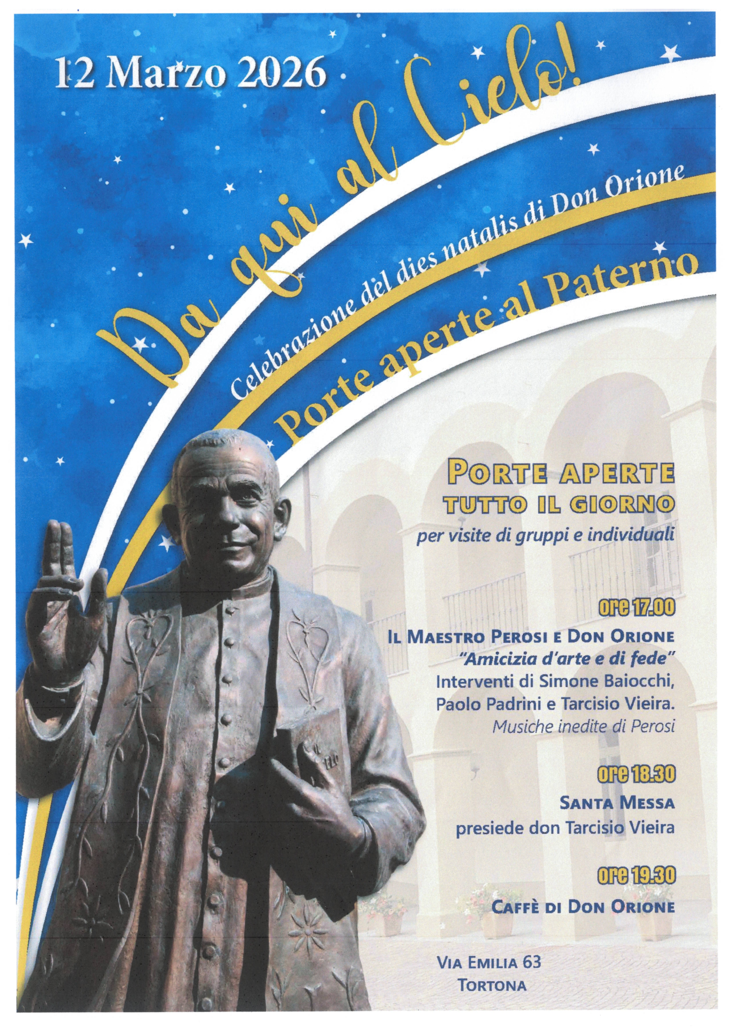 nella ricorrenza del Dies Natalis di Don Orione, giovedì 12 Marzo verrà presentato, nella chiesa di San Michele in Via Emilia 67 a Tortona (di fianco al Paterno), alle ore 17.00, il nuovo libro di Don Flavio Peloso dal titolo: