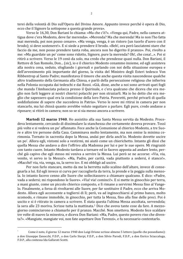 QUANTO E’ SCRITTO NEL DIARIO DELLA CASA ORIONINA DI CHIRIGNAGO SU GIOVANNI PAOLO I