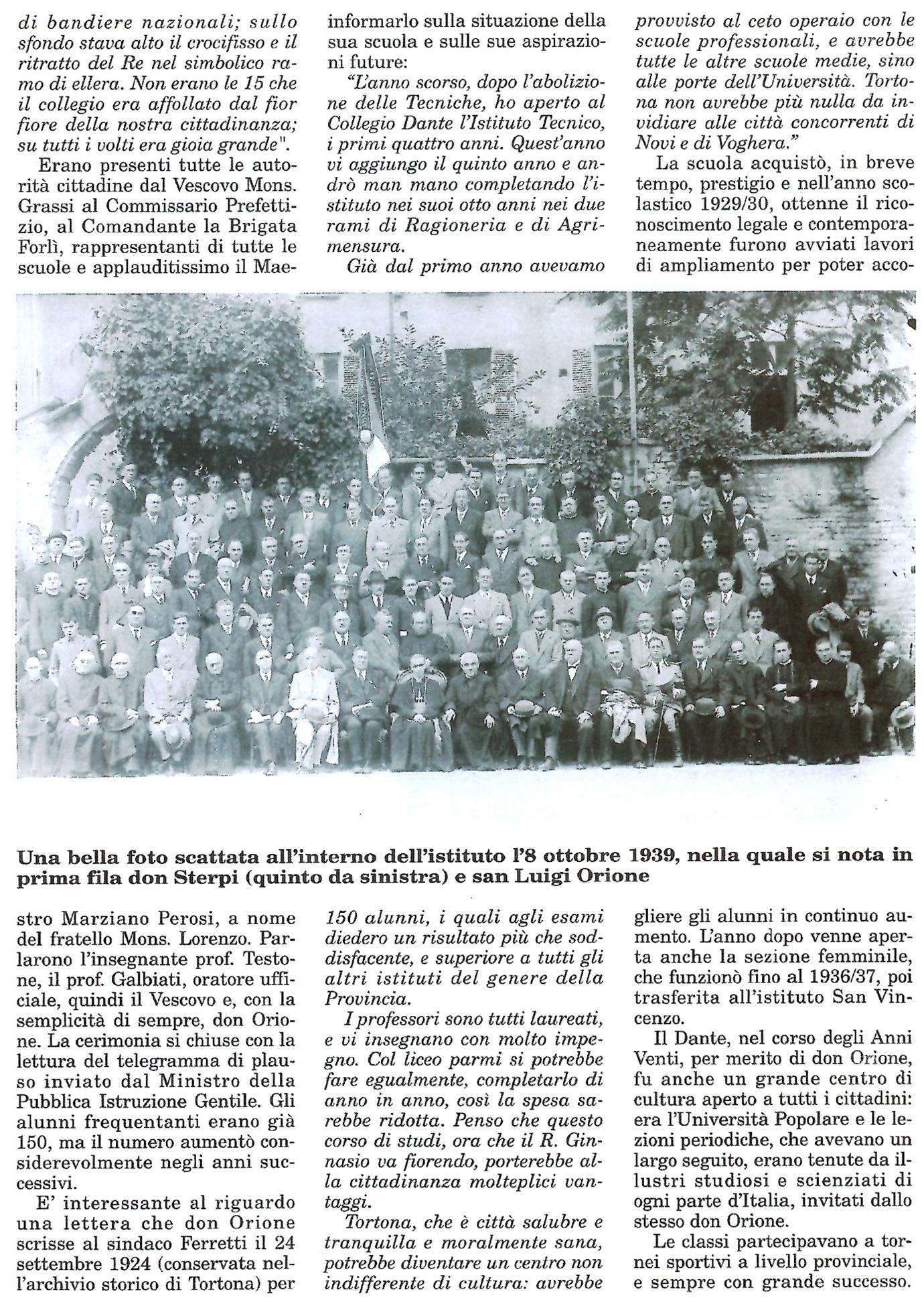 L’Istituto Tecnico Dante Alighieri fu aperto da don Orione nell’anno scolastico 1923-1924.
